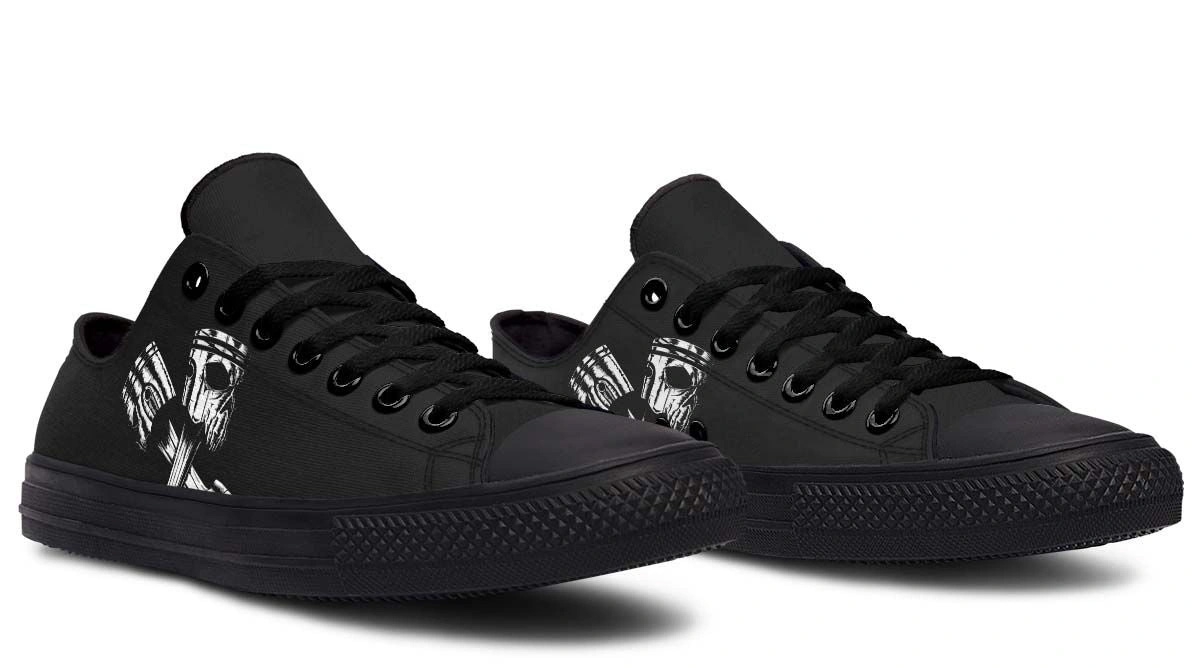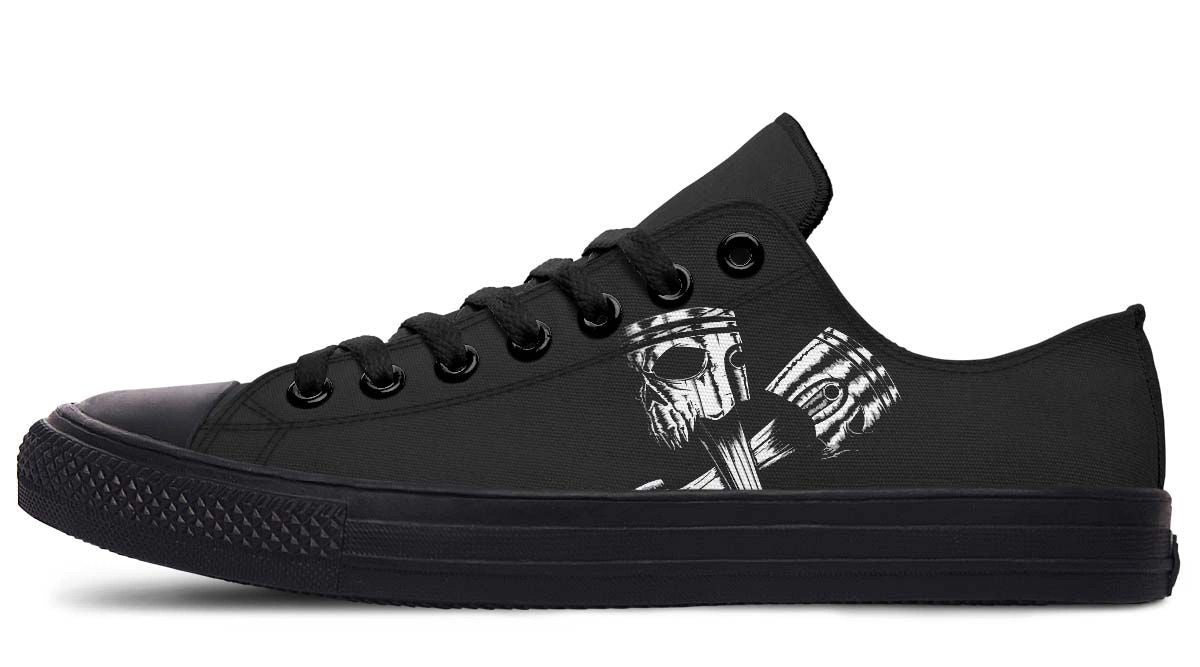 Skull Engine Motor Black Low-Top Sneakers – Edgy Biker Style
